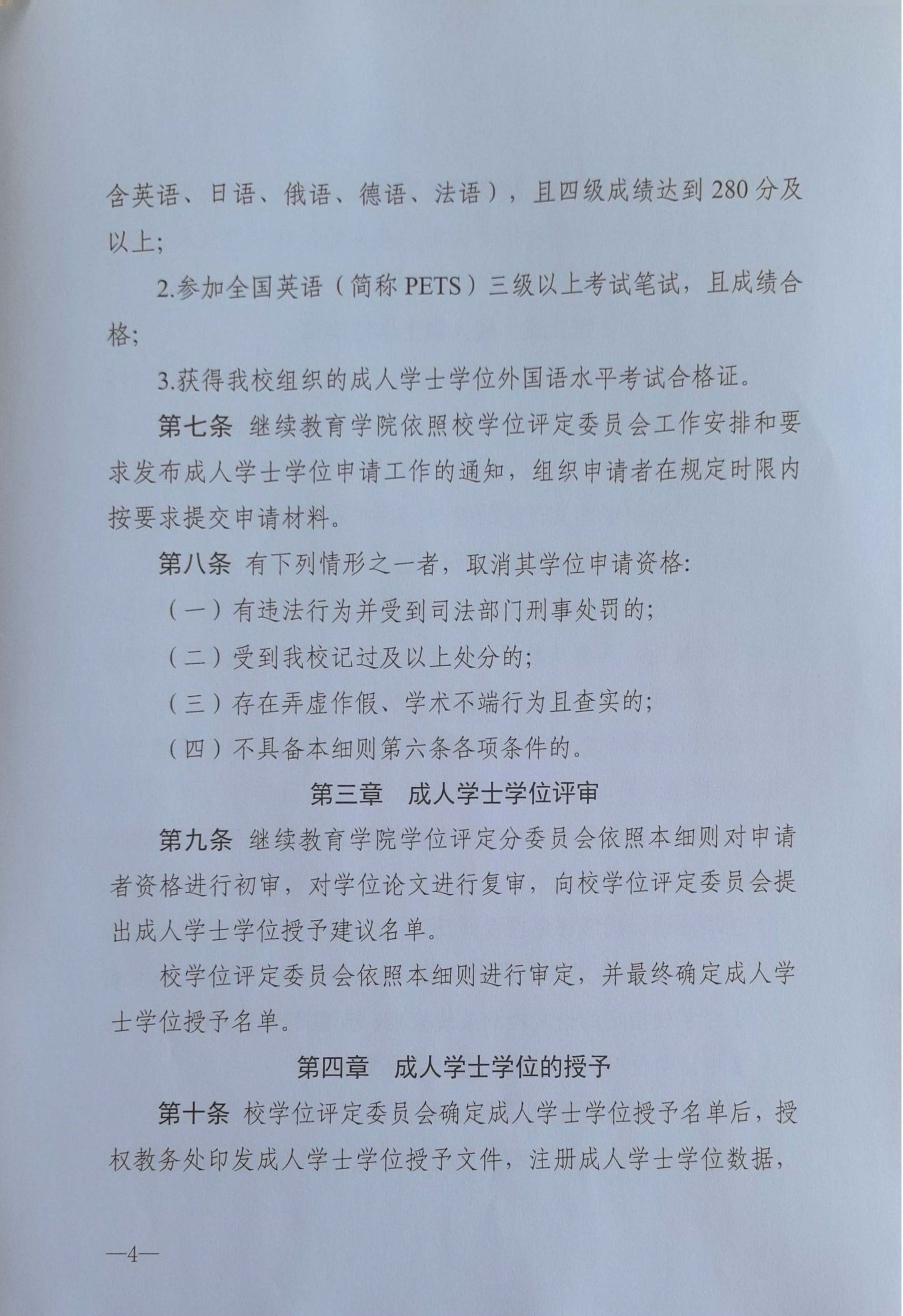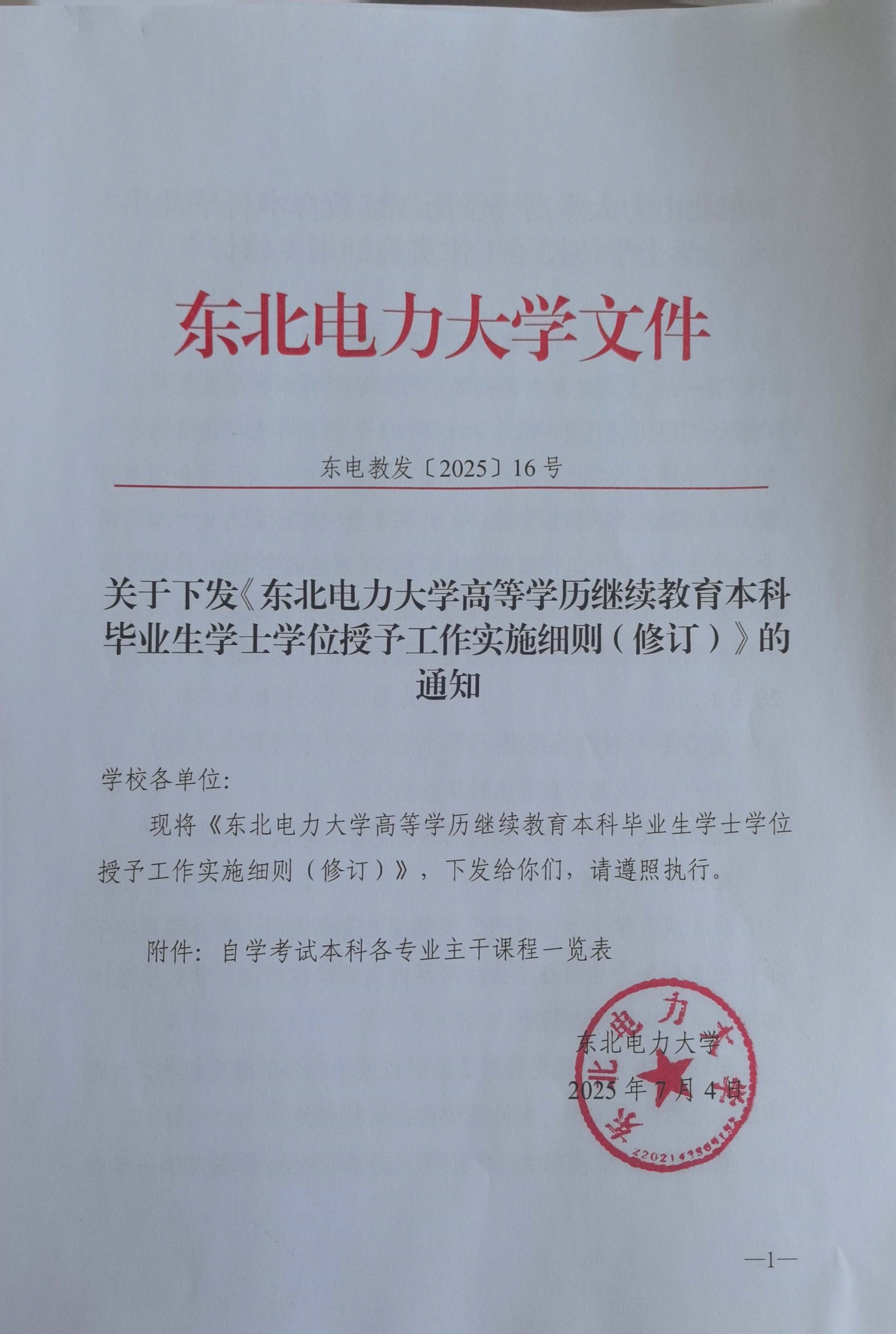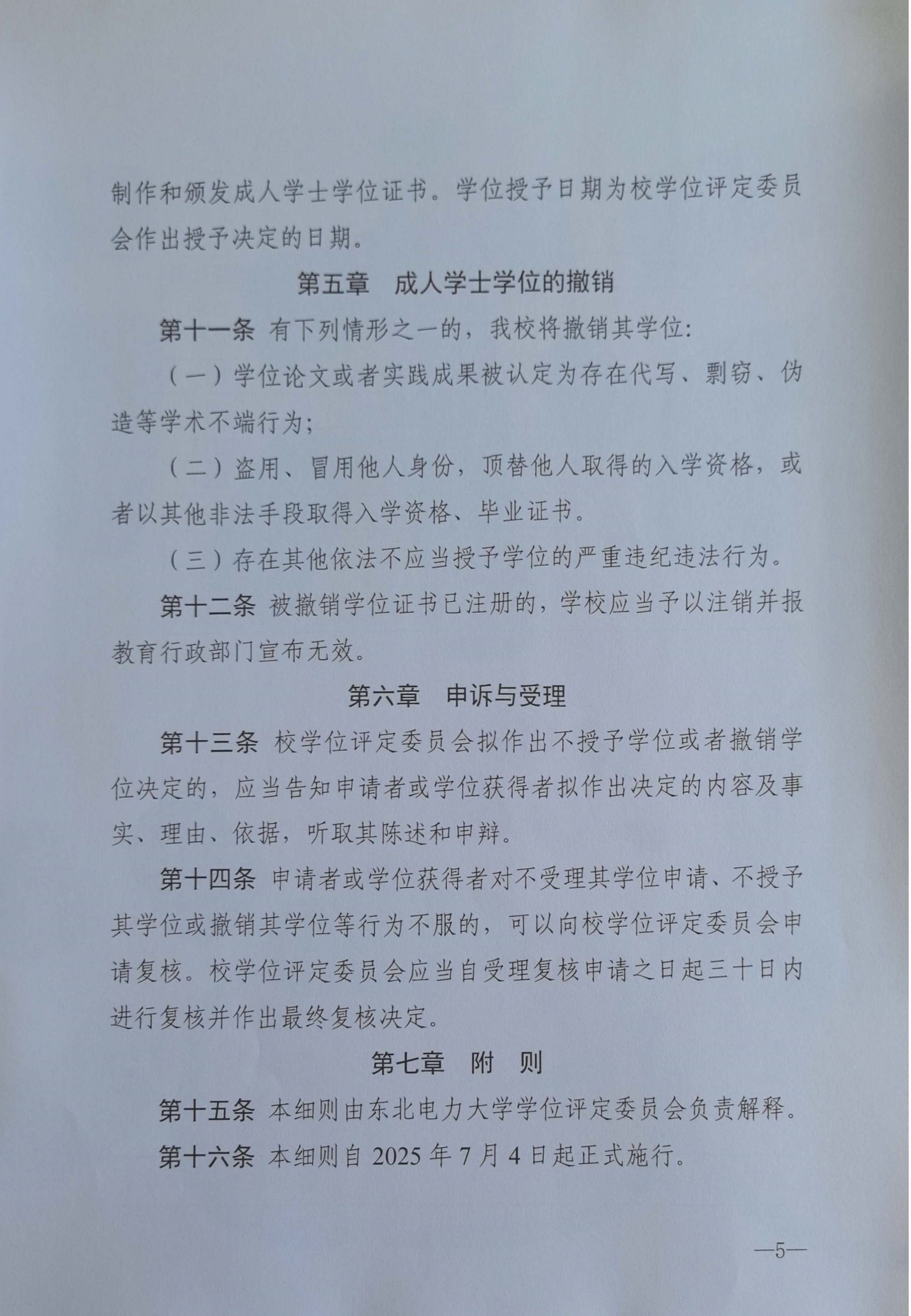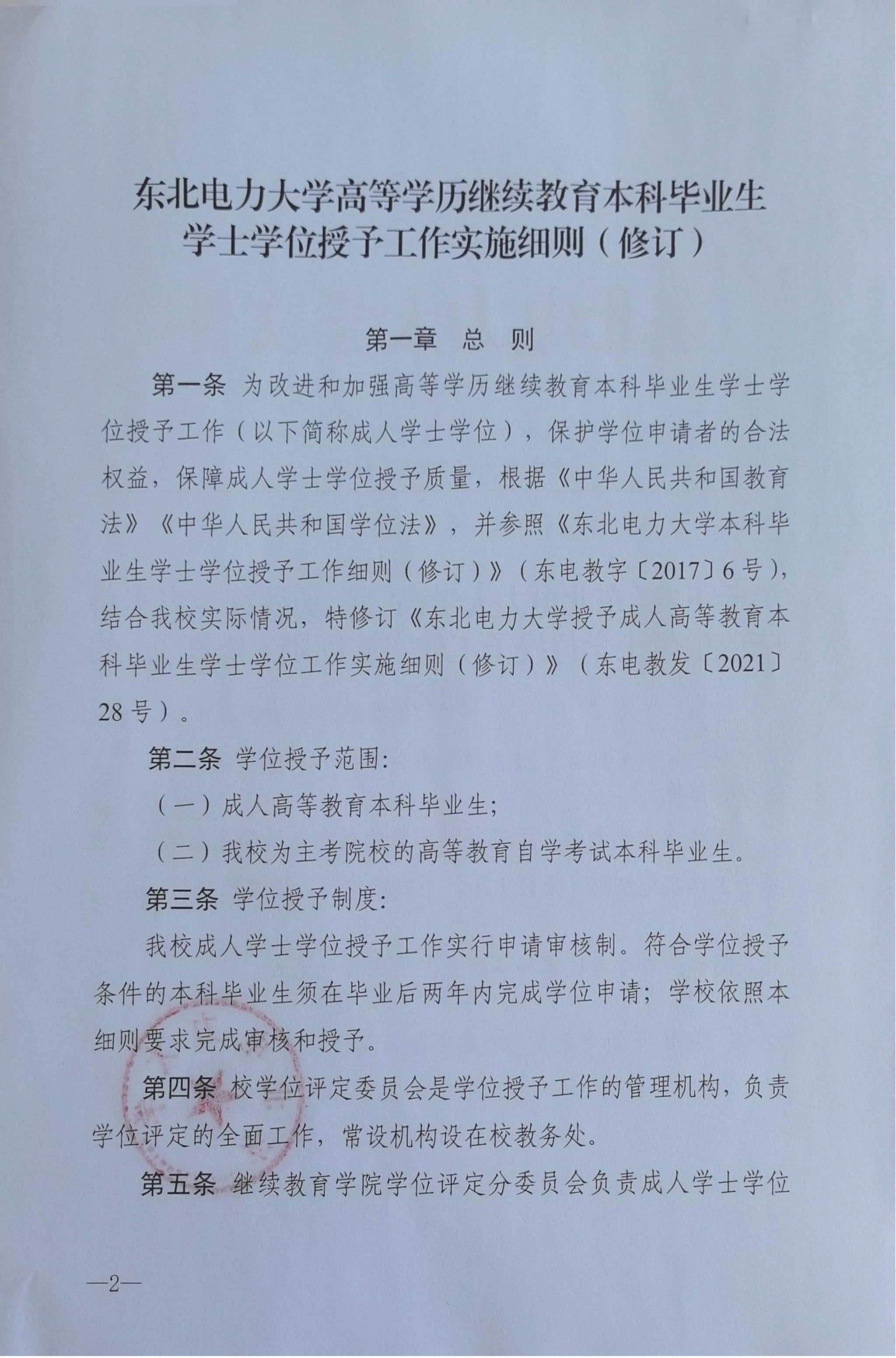 东北电力大学高等学历继续教育本科毕业生学士学位授予工作实施细则(修订)